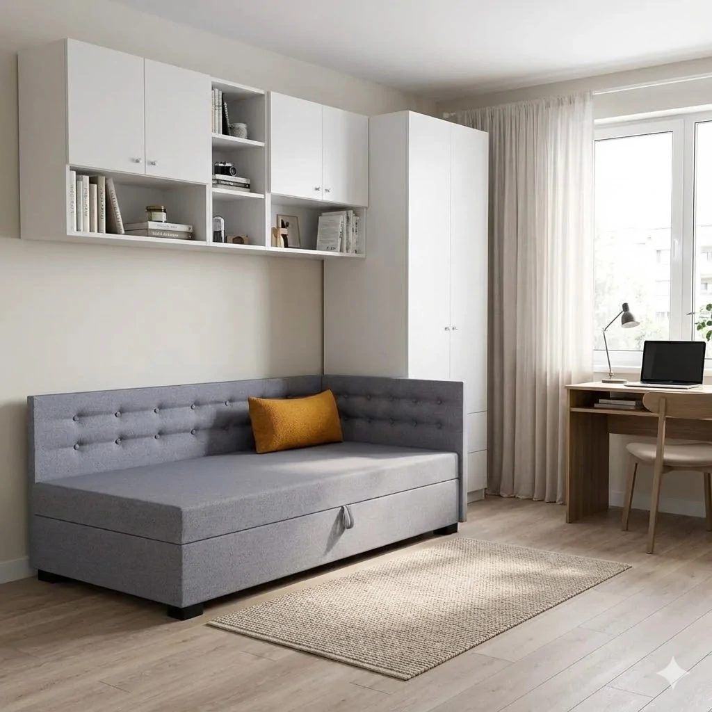 Wyposażony w łatwo otwierany pojemnik na pościel, umożliwia wygodne przechowywanie i utrzymanie porządku.